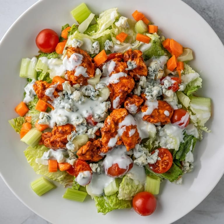 Save The first time I made this salad was on a sweltering July afternoon when cooking anything felt like a punishment. I had leftover chicken from weekend grilling and a fridge full of vegetables that needed using. Something about the crunch of cold romaine against that spicy buffalo sauce just clicked. Now it is my go to when I want dinner to feel indulgent but still light enough for summer weather.