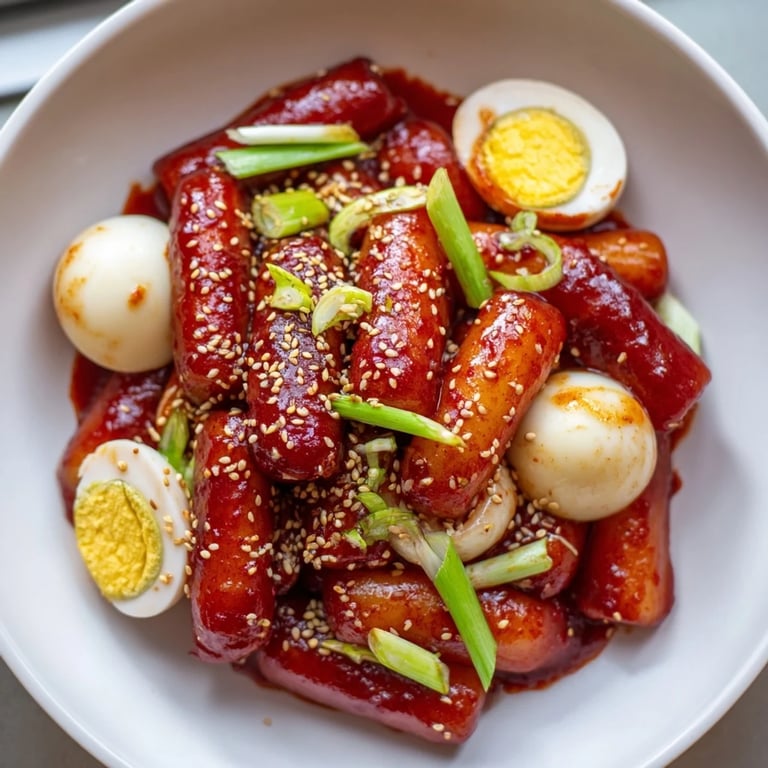 I made this for my roommate on a lazy Sunday afternoon, and she called it "the most comforting thing that also makes you sweat." We sat at the kitchen counter, fishing for eggs with chopsticks, dripping sauce everywhere, laughing at how messy it all was. That's when I realized tteokbokki isn't really a dish meant to be eaten quietly or politely—it's meant to be shared, enjoyed, and maybe a little bit chaotic.