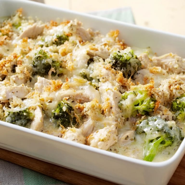 Save A comforting creamy casserole featuring tender chicken fresh broccoli and a golden cheddar cheese topping—perfect for a family dinner or potluck.