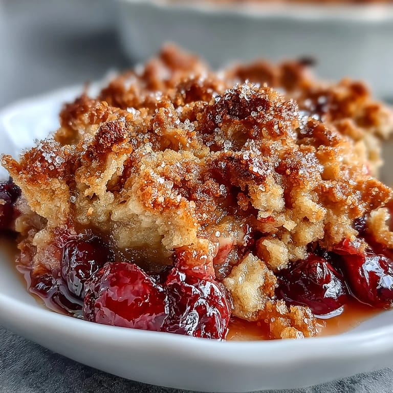 Save Experience the perfect holiday dessert with this Crispy Cranberry Cobbler. This dish features a vibrant layer of tart, juicy cranberries nestled beneath a golden, buttery, and exceptionally crisp topping, making it a festive favorite for any family gathering.