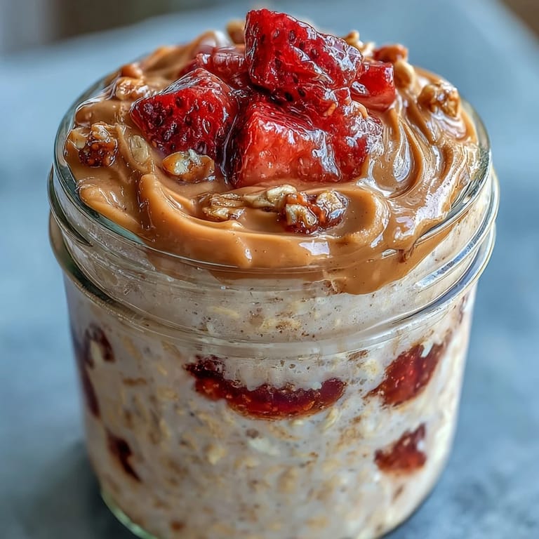 Save Last Tuesday morning, I was standing in my kitchen still half-asleep when my roommate asked if I could make something that wouldn't fall apart in her gym bag. That's when it clicked—overnight oats, but actually good, with peanut butter and jam swirled through like a childhood sandwich reimagined. I grabbed what I had on hand and layered everything into mason jars, not knowing this would become the breakfast I actually crave instead of tolerate. The protein powder was a game-changer, turning something indulgent into something I could feel good about eating.