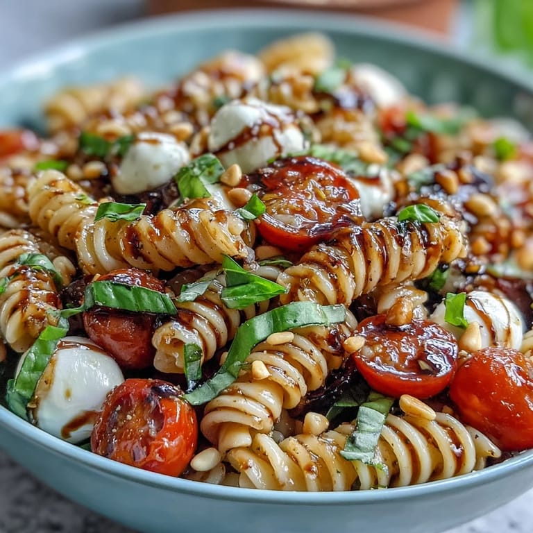 Last month, after a hike, I threw this salad together for friends who showed up dusty and hungry; I still remember how everyone hovered near the bowl, trading stories while I tossed in pine nuts. There's something quietly gratifying about how quickly the flavors come alive—especially when laughter is echoing off walls and basil perfumes the air. The garlic option came from my neighbor's suggestion, who whispered it would work wonders for those who love a little bite. Bringing out the balsamic glaze felt almost ceremonial, turning a simple toss into something memorable. That evening, pasta salad meant more than food—it was a bright pause in conversation.