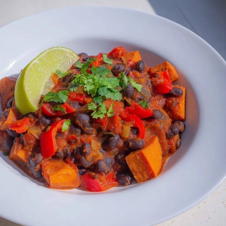 Save A hearty, vibrant vegetarian chili featuring sweet potatoes, black beans, and a blend of warming spices—perfect for a comforting weeknight meal.