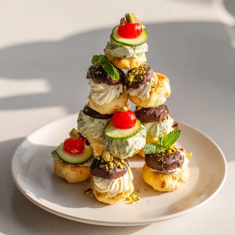Save This recipe is not only a feast for the palate but also a visual delight. As you carefully stack each layer, you create a miniature edible tower that sparks conversation and invites guests to explore each unique bite. The fresh mint garnish and chopped pistachios add a final touch of elegance and crunch, making the experience all the more memorable.