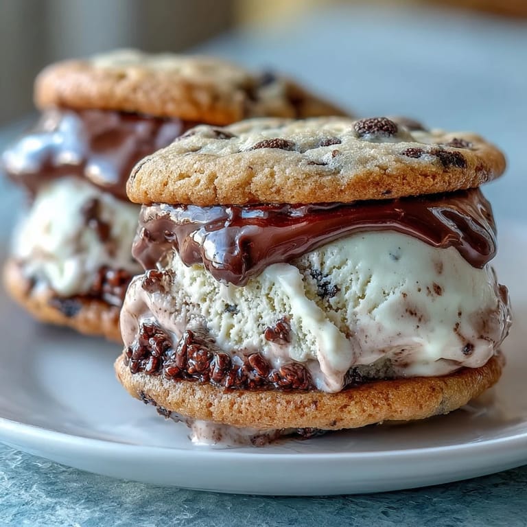 Once you master the basic sandwich, the fun part is playing with flavors without changing the structure. I've added mini chocolate chips to the cookie dough, rolled the assembled edges in crushed espresso beans for extra crunch, and even made a salted caramel ice cream version that turned out unexpectedly perfect. You can also dip the finished sandwiches in melted chocolate that hardens when it hits the cold ice cream, creating a shell like something from a fancy ice cream shop.