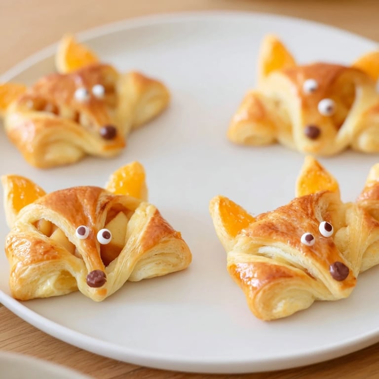 Save Whimsical, tender pastry bites filled with spiced apple and pear, shaped like playful foxes—perfect for autumn gatherings or a fun family treat.