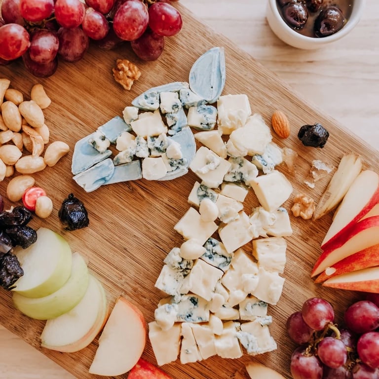 - Use a small dish of honey or fig jam as an eye or to accent the board.