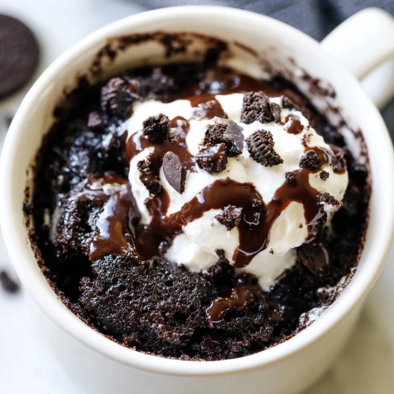 Save There's something almost magical about standing in front of the microwave at 10 PM, craving chocolate cake but lacking the patience for an actual baking project. That's when I discovered that four Oreos, a splash of milk, and ninety seconds could deliver pure indulgence in a mug. The first time I made this, I wasn't even sure it would work—but the moment I pulled it out and saw that warm, fudgy cake rising in the ceramic vessel, I knew I'd found my secret weapon for late-night cravings.