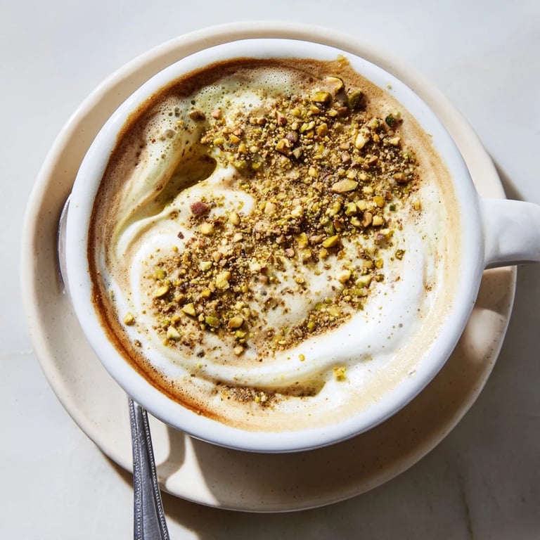 This creamy beverage blends homemade pistachio milk with rich espresso for a modern café twist. Pistachios are soaked and blended with vanilla and sweetener, then strained to create smooth, dairy-free milk. Gently heated and paired with bold coffee, this latte delivers nutty flavor and aromatic warmth. Garnished with crushed pistachios, each cup balances natural sweetness and creamy texture. Suitable for vegetarian and gluten-free diets, preparation is easy but requires soaking time for the nuts. Refresh hot or iced, and customize with spices for extra flair.