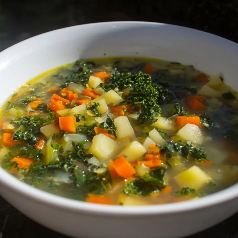 A warm, nourishing blend of tender potatoes, nutrient-rich kale, and savory vegetables with herb-infused broth.